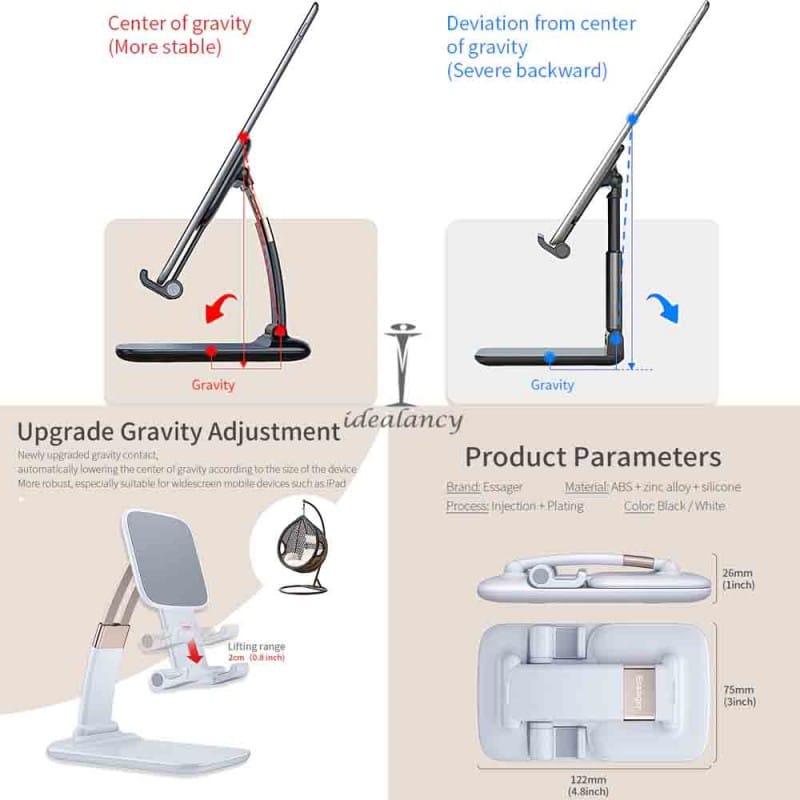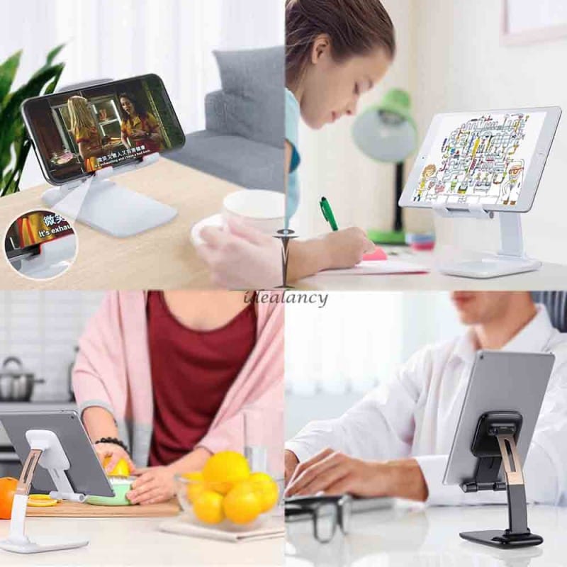 - Fully Foldable Phone Holder Makes Your Life Easier & PortableThe mobile phone holder with foldable design, this iPad mobile phone tablet stand can be folded into a mini body. It’s easy to carry and takes up very little space, making it convenient to carry it in any scene. It’s a perfect companion for travel. Just pull out the kickstand on the back, and then you can watch the downloaded movies on the plane. Owing to it, your life will be easier and portable.